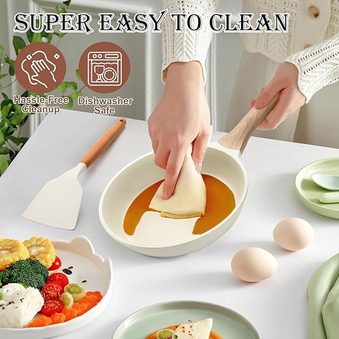 14-piece pot and pan set, non-stick cookware set, granite induction cookware non-stick cooking set with frying pan, saucepan, wok, extra-large casserole, PFAS-free PTFE PFOA perfluorooctanoic acid
