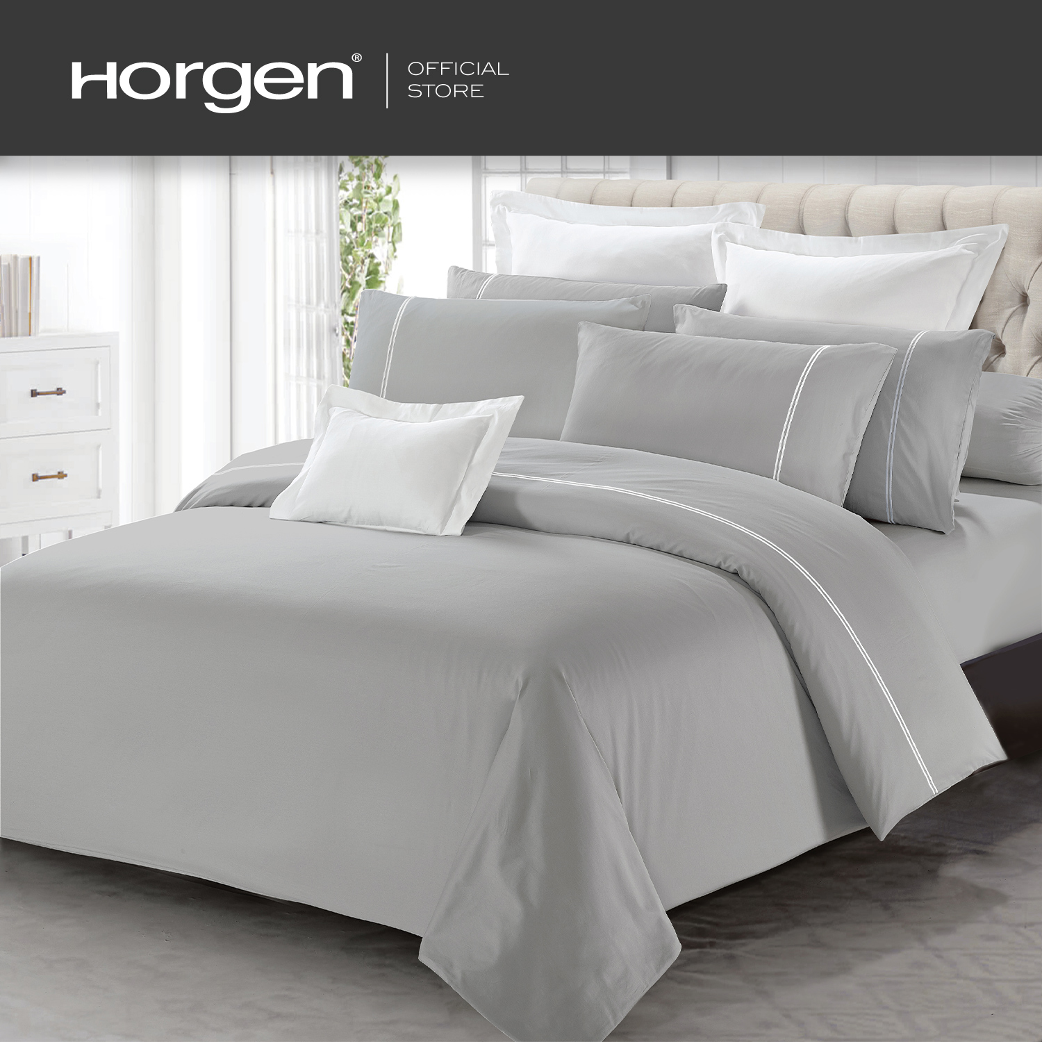 HORGEN Luxe Collection Barrett Hotel Series brings you quality, silky sheets for a contemporary and minimalistic hotel look at home. Made with extra-fine 100% Egyptian Cotton Long Staple yarns, these sheets are silky smooth and soft to the touch. Finished with elegant equal-weighted double line embroidery for the hotel look, this range of sheets comes in various contemporary hues that have been dyed using the reactive dye process, resulting in steadfast and long lasting colors.