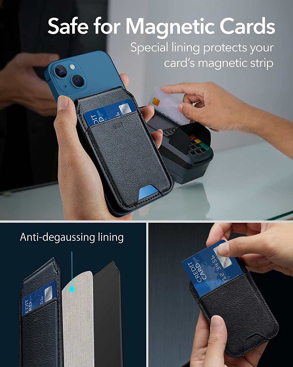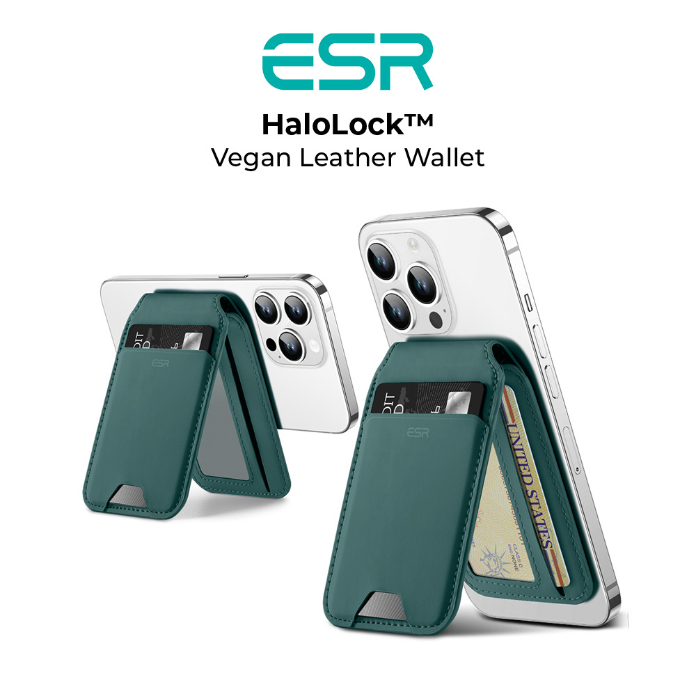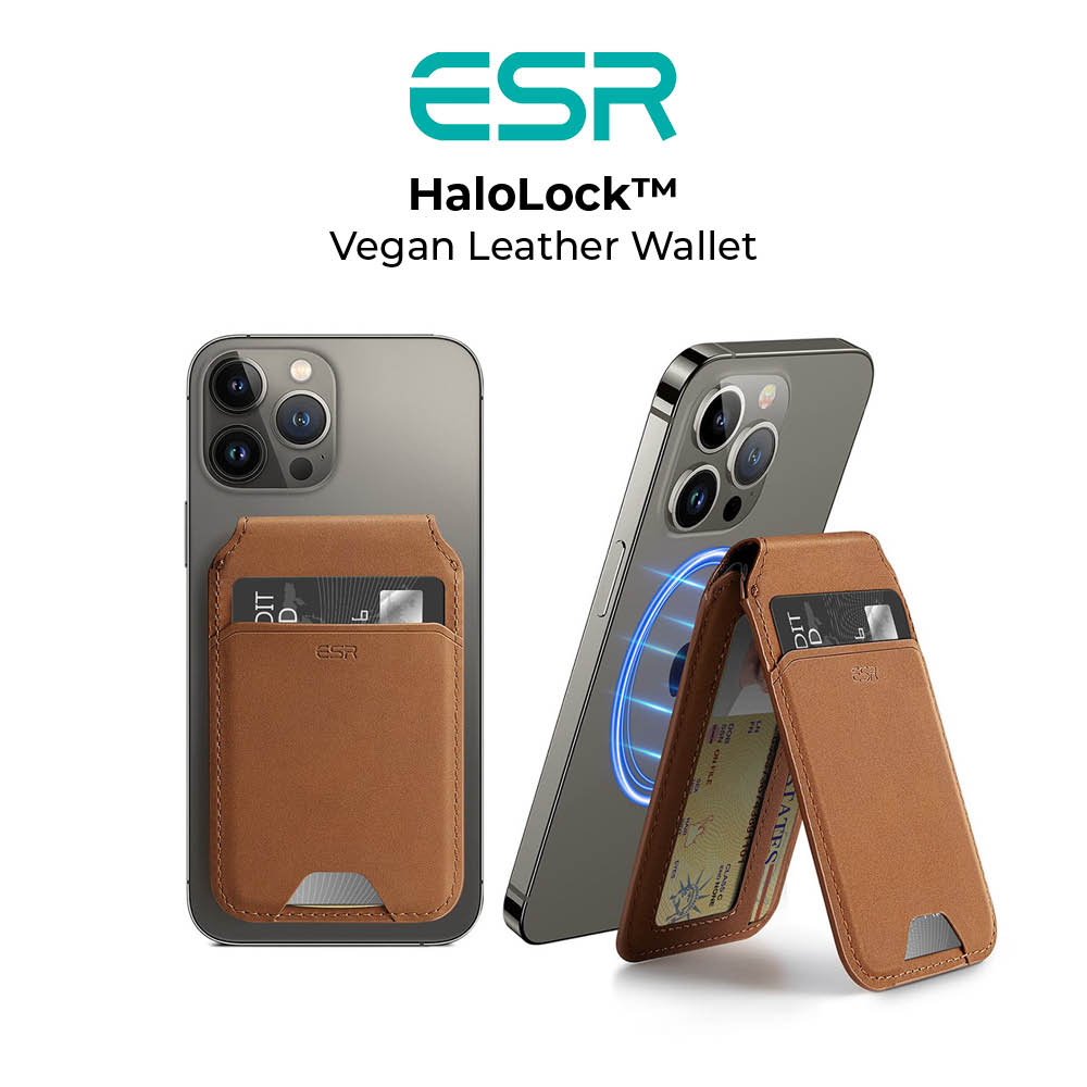 ESR HaloLock Vegan Leather Wallet Stand, MagSafe Wallet and Adjustable Stand, Compatible with iPhone 13/13 Pro/13 Pro Max/12/12 Pro/12 Pro Max, 3 Card Holder, Not Compatible with iPhone Mini