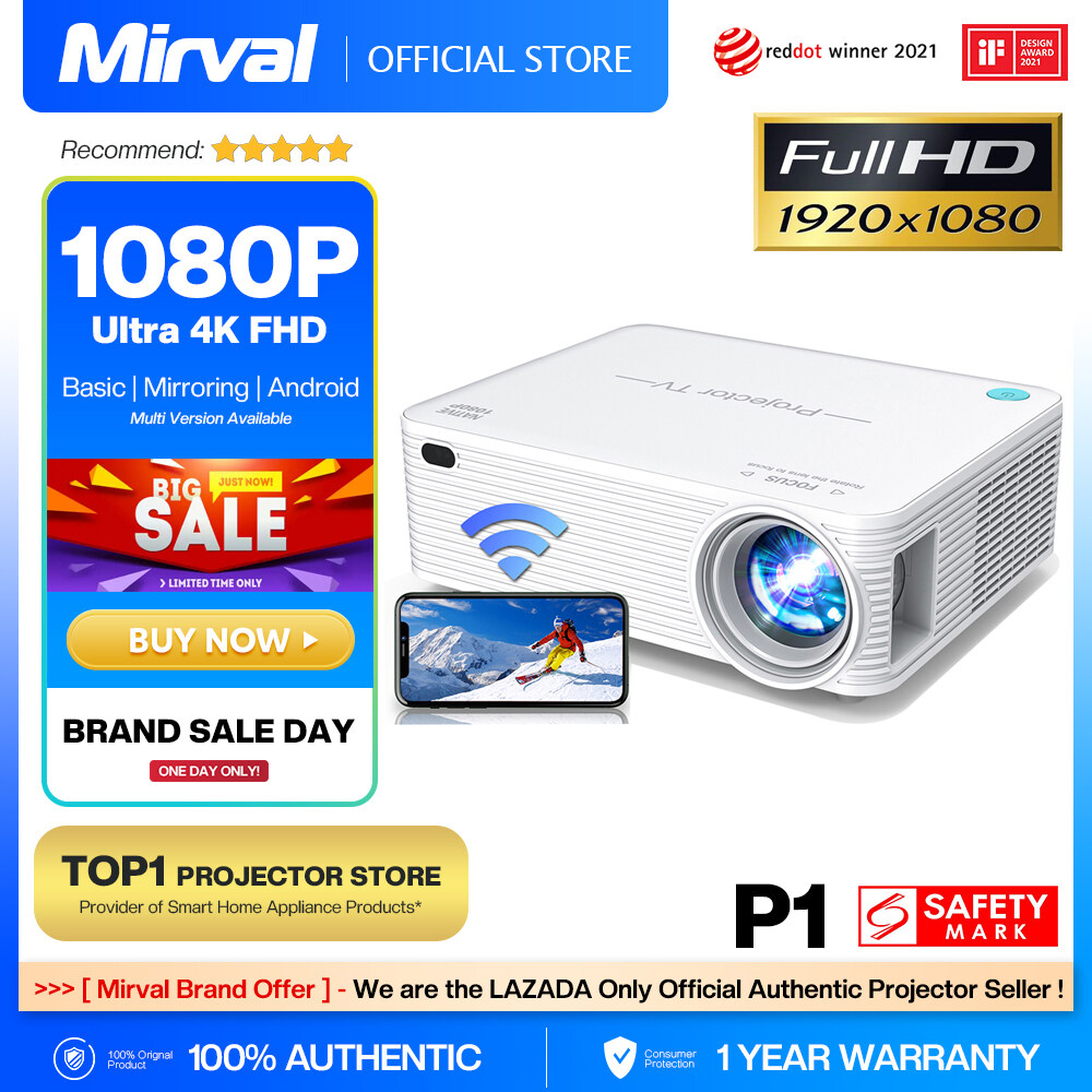 【Full HD 1080P】Mirval P1 Native 1080P Full HD 4K Projector Portable Beamer 8500 Lumens Auto Keystone Home Cinema Classroom Office