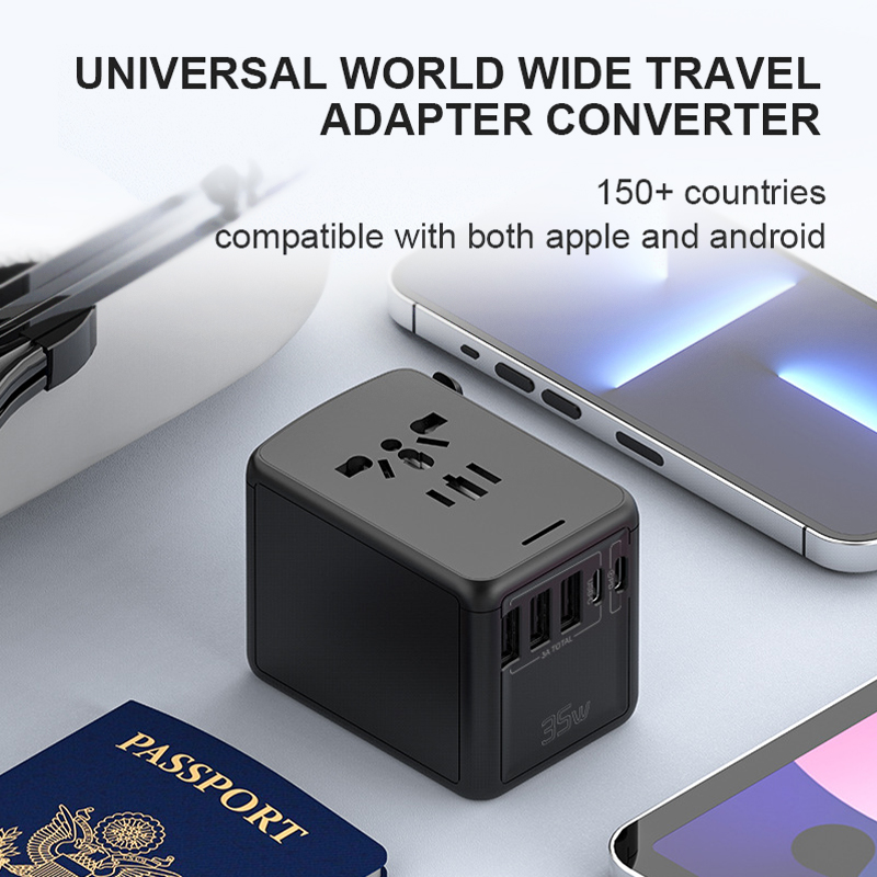 Universal Travel Adapter All in One International Worldwide Wall Power Travel Adaptor with 4 USB Ports + 1 Type C Port Fast Wall Charger Plug