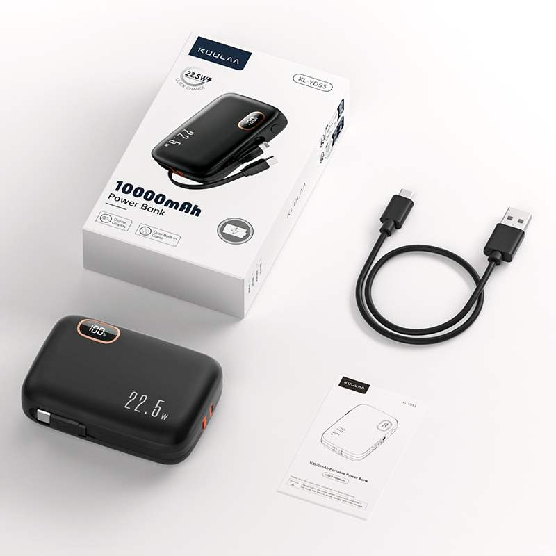 KUULAA 10000mAh Power Bank Mini PowerBank Portable Charger PD Fast Charging Built in Two Cables Type C L Compatible for iPhone 15 14 13 12 Huawei Xiaomi Samsung