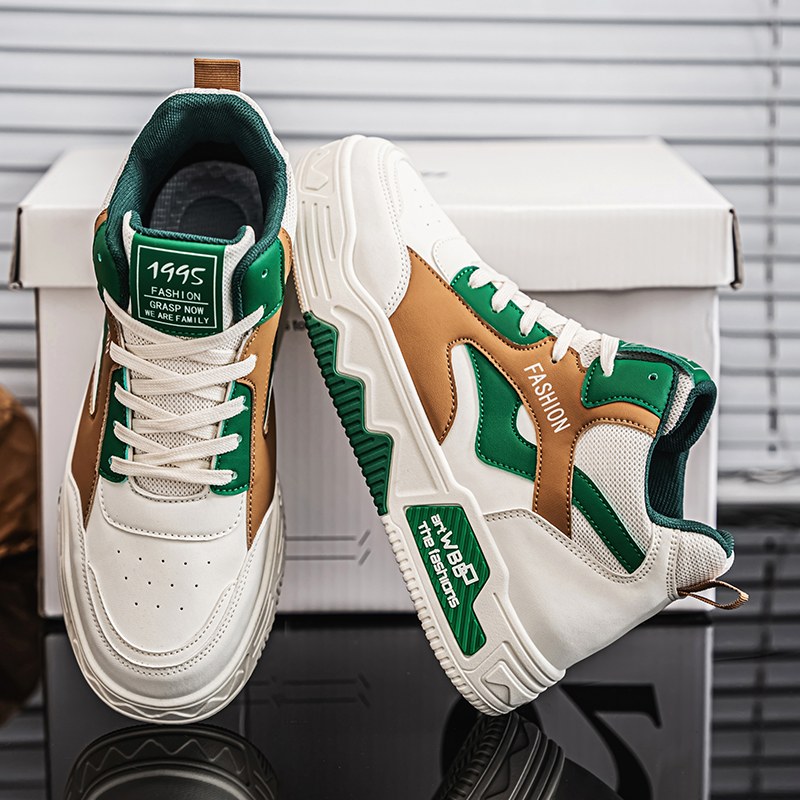 【READY STOCK】Men's high top sports shoes, outdoor casual board shoes, thick soled lightweight sports shoes, round toe lace up running shoes.