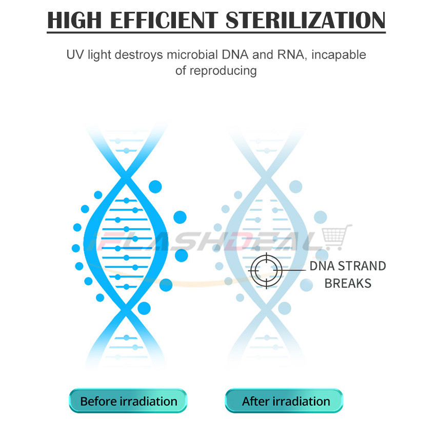 • Anti-germ 99.9% :The UV disinfection light destroys the molecular structure of DNA or RNA in viruses with UV light,anti-germ rate up to 99.9%
